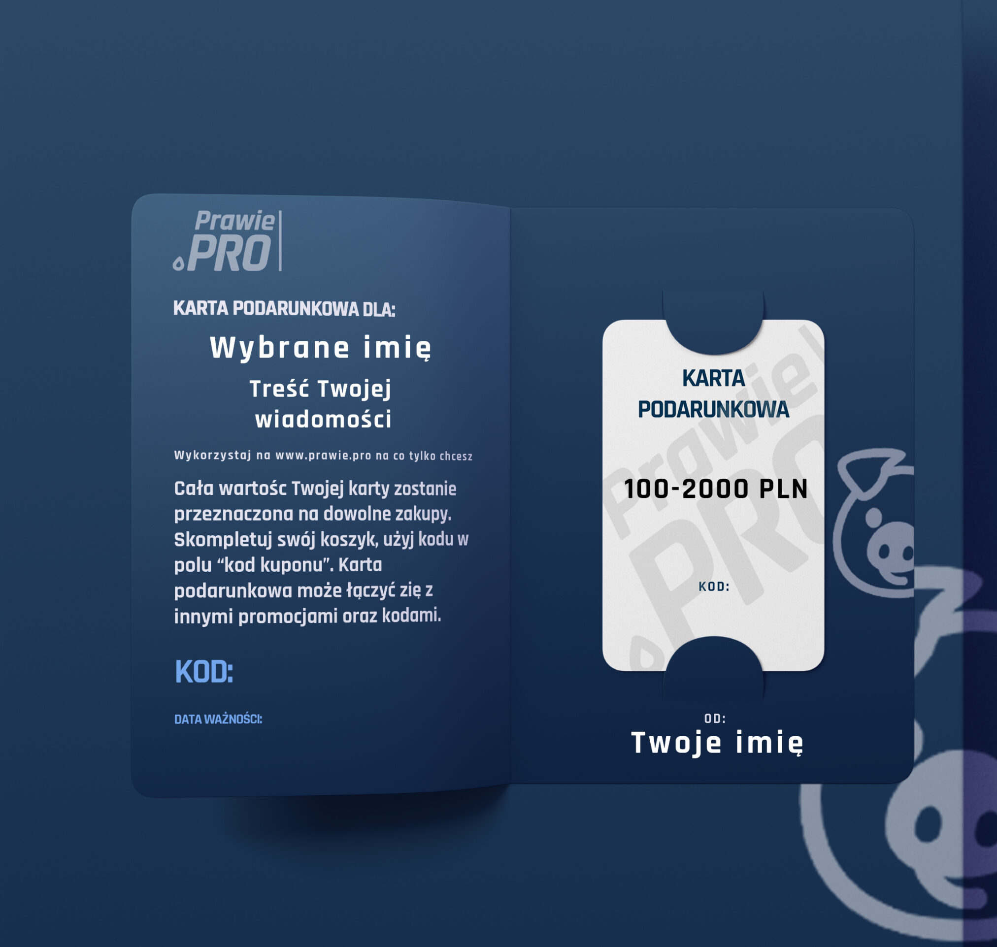 Jak wykazać się sprytem i oszczędzić sobie kłopotów? Kupić dedykowaną kartę podarunkową Prawie.PRO. Jej właściciel otrzyma od Ciebie specjalną wiadomość email wraz z kartą podarunkową w formie PDF. Natychmiast lub zadanego dnia.