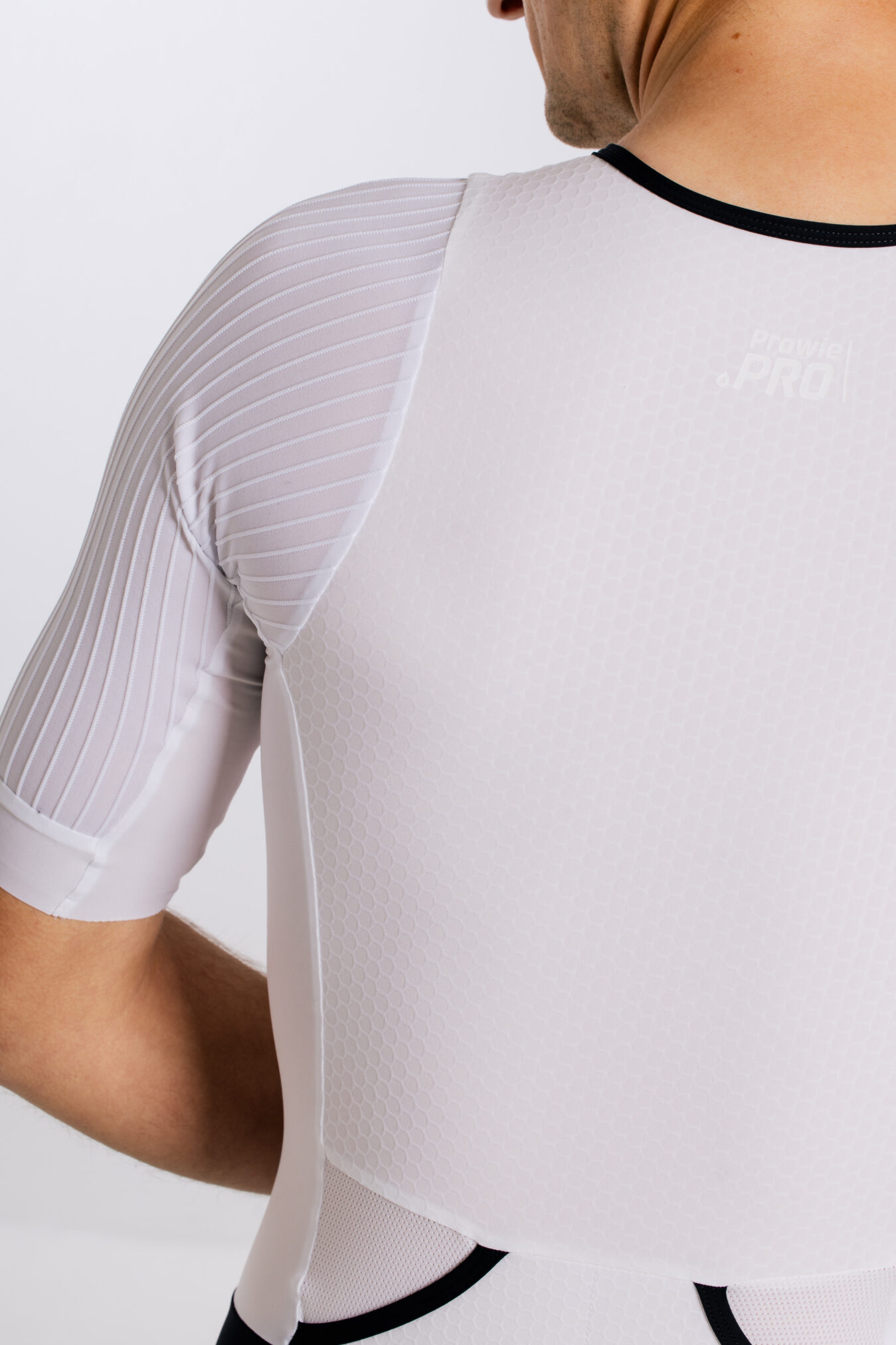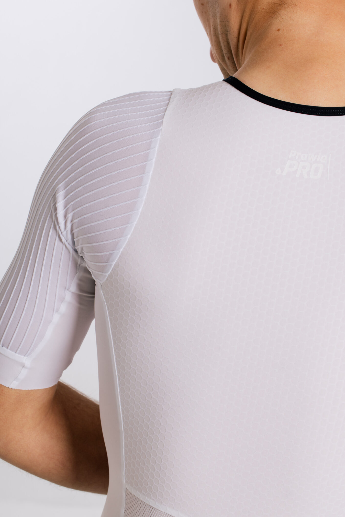 Tkanina oplatająca Twój tors posiada wyjątkową strukturę plastra miodu co pozwala równomiernie opinać Twoje ciało. Dzięki temu nie czujesz go na sobie. Zwłaszcza gdy jesteś na rowerze lub ostatnim etapie swojego wyzwania. Wówczas wspierany jesteś poprzez szybkie odprowadzanie nadmiaru ciepła i wilgoci. Nie tylko dla poprawy komfortu, ale przede wszystkim by pozwolić unikać podrażnień skóry,