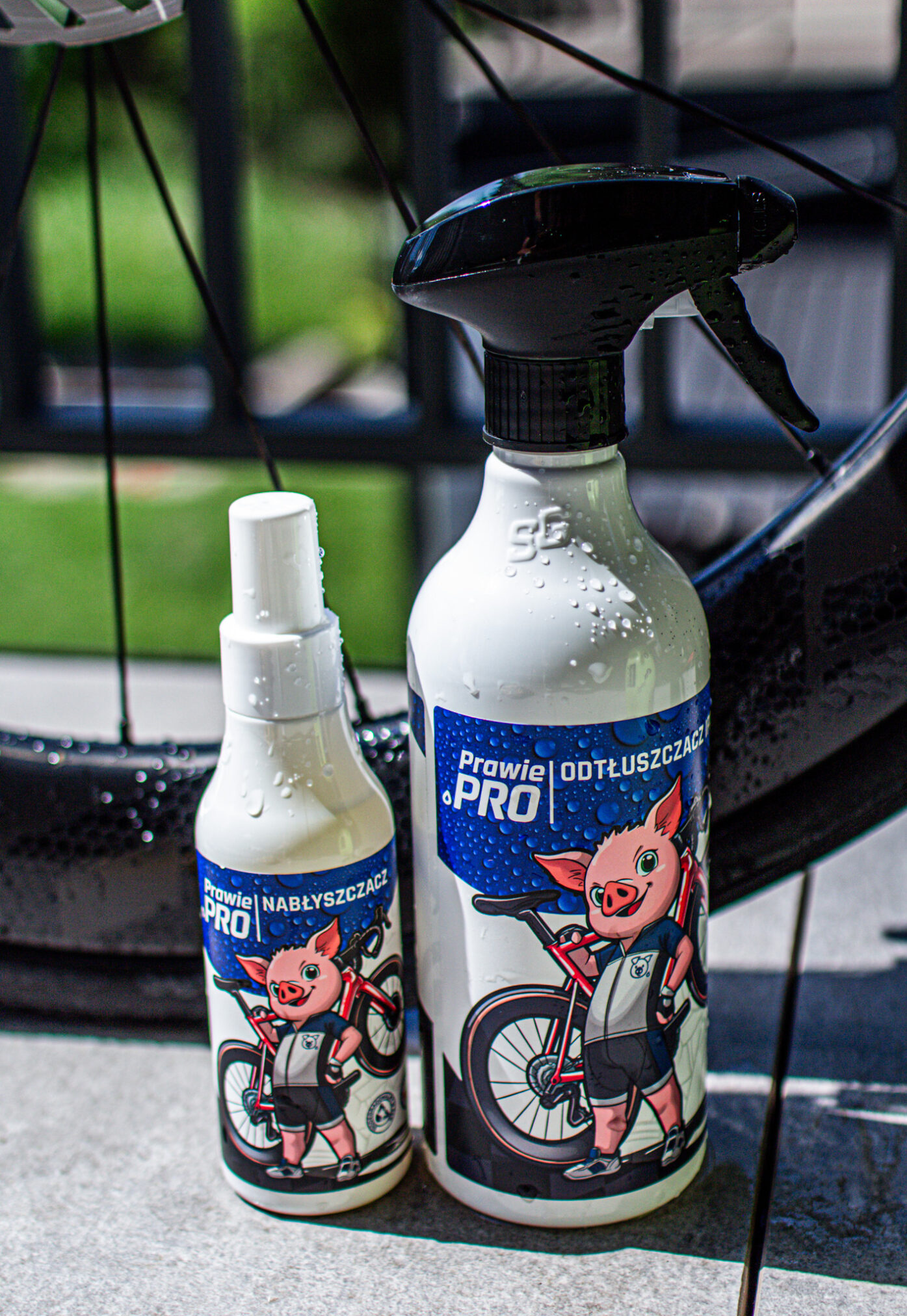 Nanieś, zetrzyj i gotowe. Dwa PROdukty dla ekspresowego blasku Twojego roweru. Niezwykle skuteczny odtłuszczacz na bazie izopropanolu do stosowania na całej powierzchni roweru oraz nabłyszczacz zawierający płynny wosk dla natychmiastowego odświeżenia i zabezpieczenia lakieru. Preparaty wyprodukowane w Polsce.